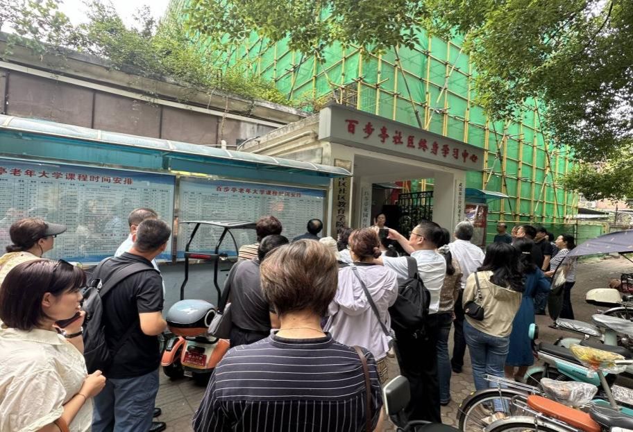 会议期间,来自全国各地开放大学近百余名同仁在武汉开放大学(武汉市社区教育指导中心)相关人员的陪同下,参观了武汉市江岸区百步亭社区终身学习中心,了解了百步亭社区老年大学的创办与发展,学习了老年大学资源建设、社区治理及文化建设等方面的先进经验。此外,重点介绍了“一老一小”项目和课程资源建设。百步亭社区老年大学坚持以习近平总书记提出的“办好继续教育,加快建设学习型社会,大力提高居民素质的”宗旨,营造“老有所学、老友所乐、老有所为”的学习氛围。考察团表示此次百步亭的学习交流受益颇丰,社区老年大学的课程丰富多彩,设施设备完善,居民幸福度高,为社区治理打下了坚实的基础,值得学习。