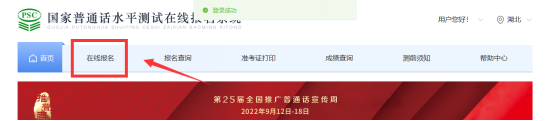 1.登录国家普通话水平测试在线报名系统,点击右上角“请登录”