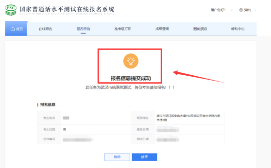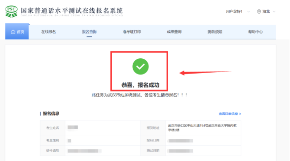 系统显示报名成功后,请于规定时间内,在“准考证打印”一栏输入信息,打印准考证。