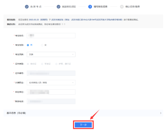 5.注册成功后,登录并完善个人信息,点击“下一步”完成注册。