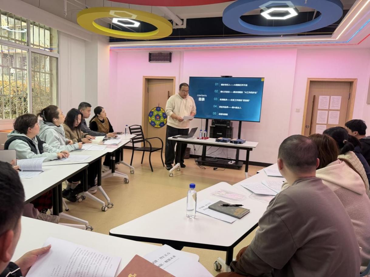 开班仪式结束后,项目第一讲——视频类AI工具专项培训正式开讲。授课教师结合社区工作实际需求,详细讲解视频类AI工具的基础操作、应用场景及实战技巧,重点演示了AI工具在社区宣传视频制作、居民需求调研、政策解读传播等方面的应用方法,帮助参训人员快速掌握数字化工具使用技巧,破解社区工作中的效率难题。