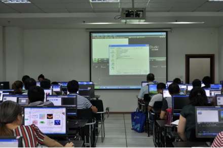 张苑老师根据自己制作微课的经验,引入实际案例,用直观的方式向老师们讲解了微课概念、微课拍摄、制作方法和制作步骤。为了更好的掌握Camtasia Studio软件的应用,结合上午的理论讲解,参与培训的老师们下午在机房上机实操、演练软件的具体操作演示,遇到困惑现场请教主讲教师,培训效果良好。