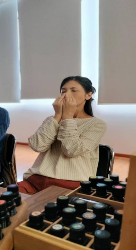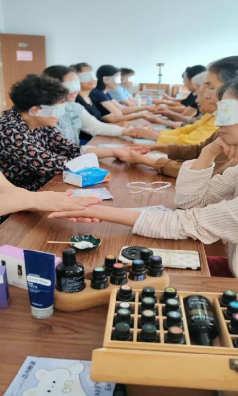 活动在专业芳香疗愈师吉米老师的《心香一缕》课堂中拉开帷幕。吉米老师以植物精油的独特能量为载体,带领老人们通过嗅吸与触摸,感受自然芬芳对身心的舒缓与滋养。现场香气袅袅,大家闭目静心,在呼吸间释放压力,仿佛置身山林幽谷。邹小轩是一位经常参加老年大学活动的退休老师,她很感慨地说:“香气不仅放松了身体,更让人心灵得到了滋养。”